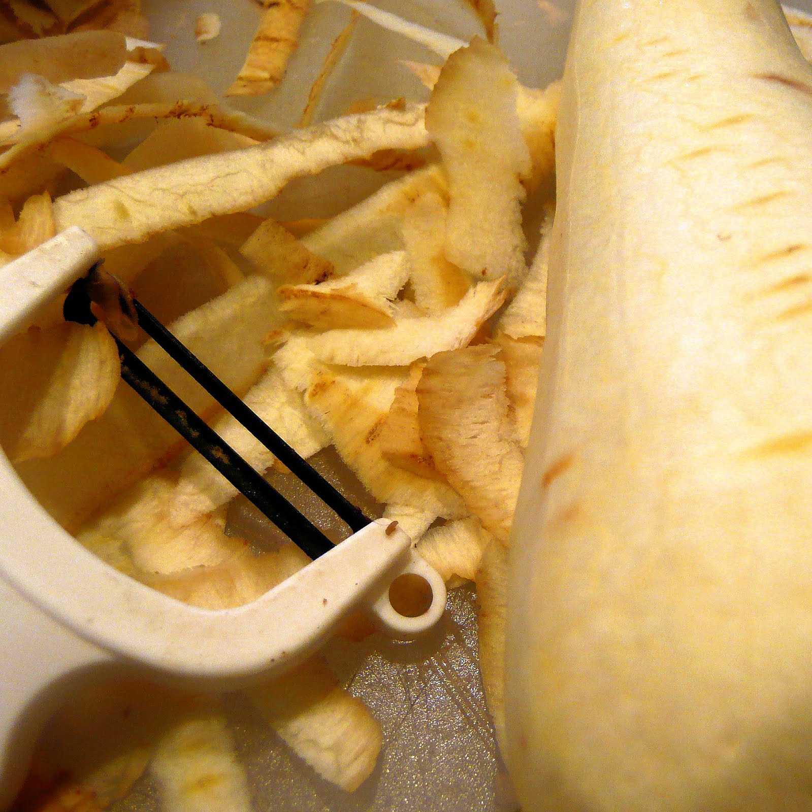 - First, prepare all your ingredients, except the parsnip. Parsnips turn dark if left out too long after peeling. To avoid this, peel and chop the parsnip last.