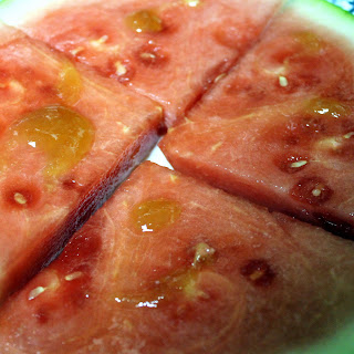 It’s amazing that grilling watermelon for a few minutes completely changes the taste of the watermelon. It’s quite tasty! The sugars in the watermelon and honey caramelize, making a new taste to the fruit. Yum!