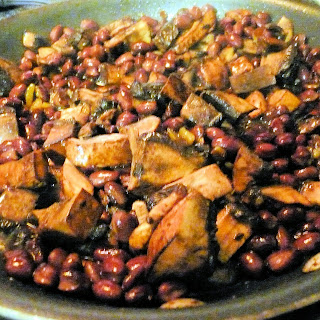 Add the vinaigrette, black beans, onions and green chile. Cook for 1 to 2 minutes, until the liquid evaporates. Mash the mixture slightly. If you have a potato masher, Cooking Light suggests using that. I don’t, so a fork will have to do!