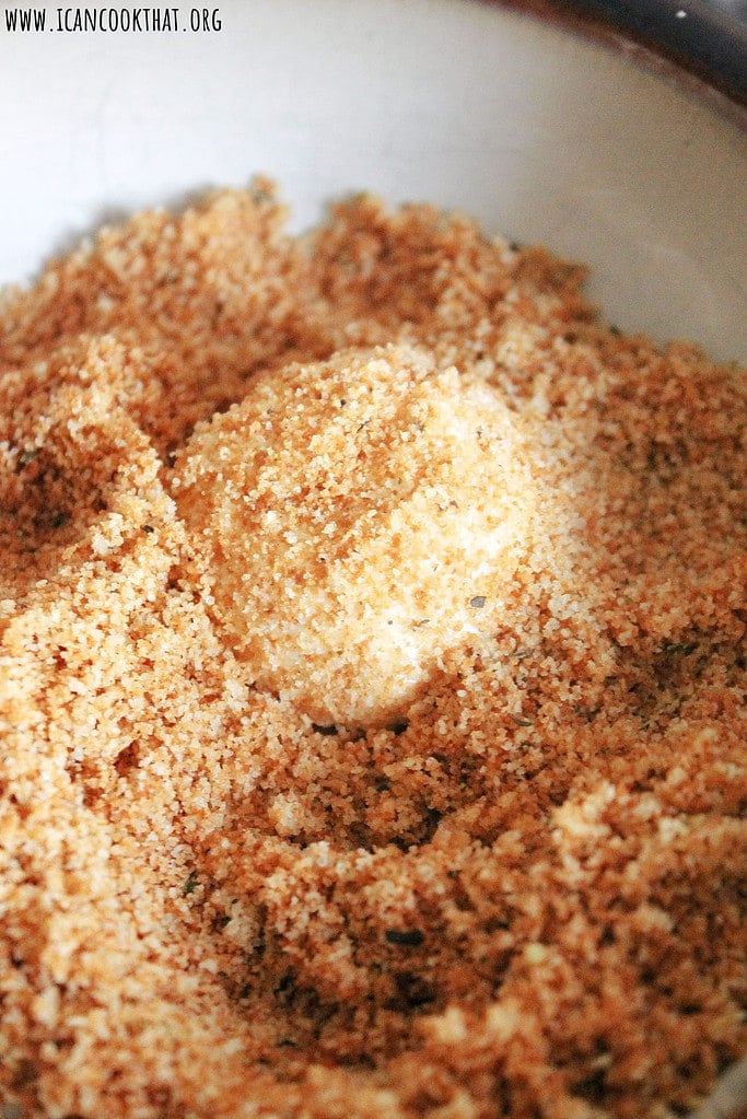 Roll the goat cheese in the cooled breadcrumbs. Arrange on a baking sheet and put in the fridge until ready to cook.