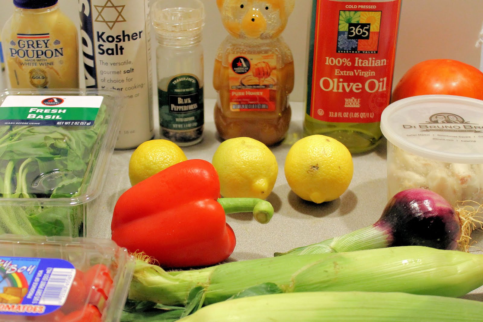 To make the dressing, combine the zest, lemon juice, olive oil, honey, and Dijon mustard. Season with salt and pepper. Stir well with a whisk until the olive oil is incorporated. To make the Crab Corn and Tomato Salad, add the corn, basil, bell pepper, red onion, crab meat, and tomatoes to the dressing. Toss gently to coat.
