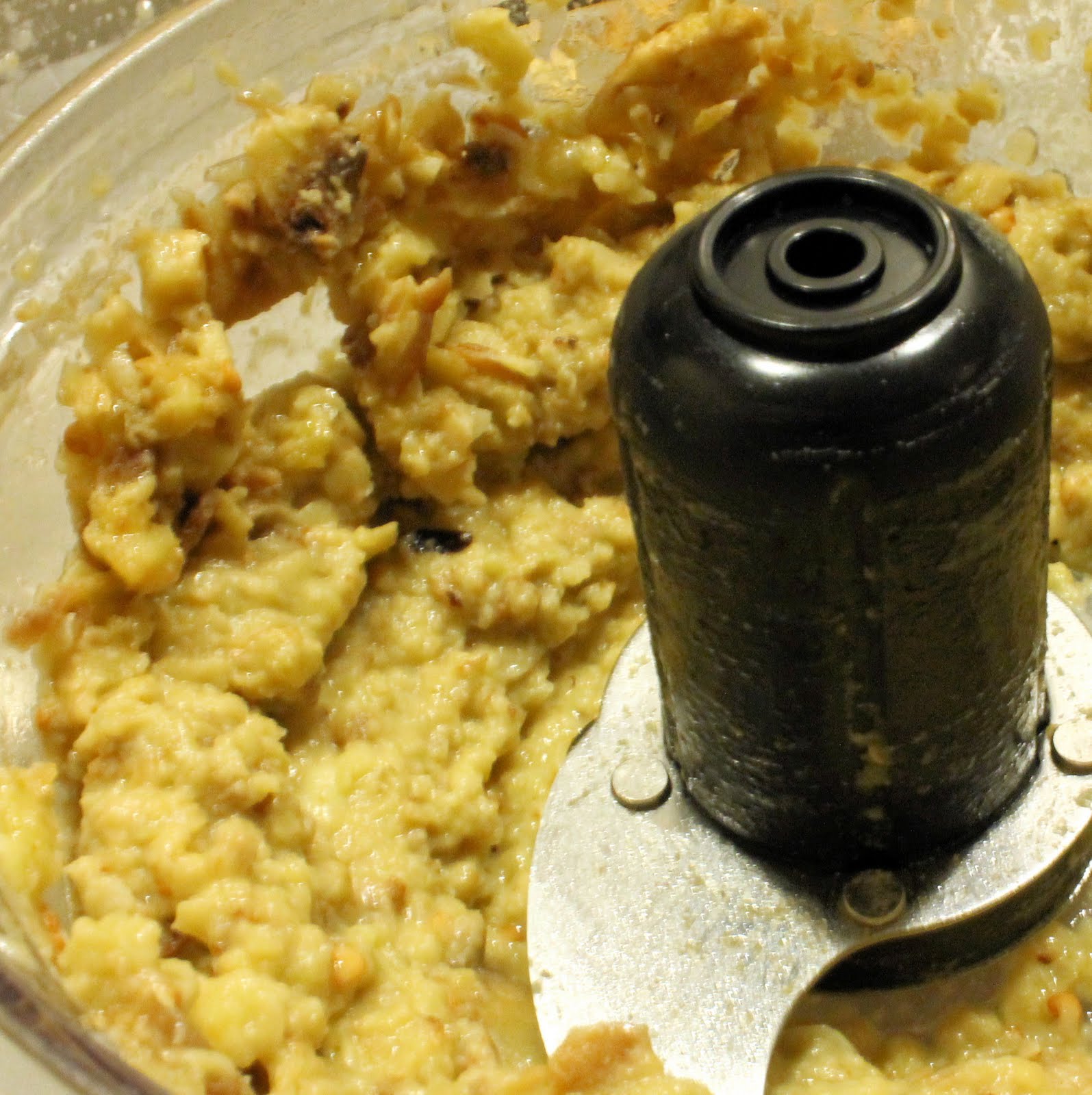 - Process until roughly chopped. While processing, add a thin stream of olive oil until the mixture is smooth.
