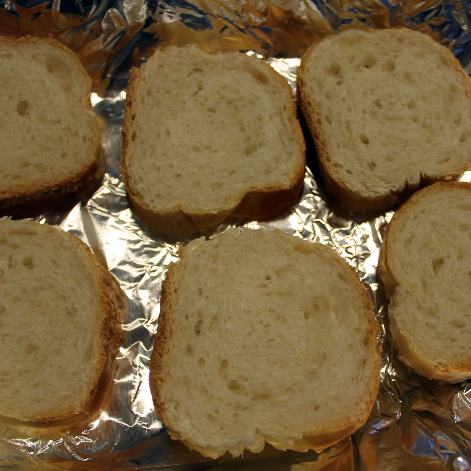 - Slice the bread. If it is fresh, add it to a baking dish so that you can toast it in the oven.