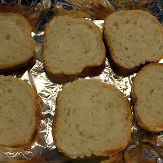 Slice the bread. If it is fresh, add it to a baking dish so that you can toast it in the oven.