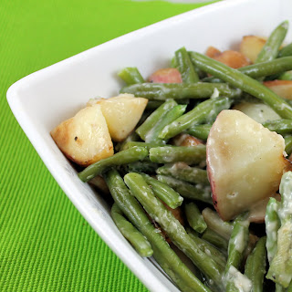 • Lightly Sauced Roasted Red Potatoes & Green Beans with Parmesan Olive Oil Sauce: whole green beans and roasted baby red potatoes, lightly tossed in a Parmesan cheese and olive oil sauce.