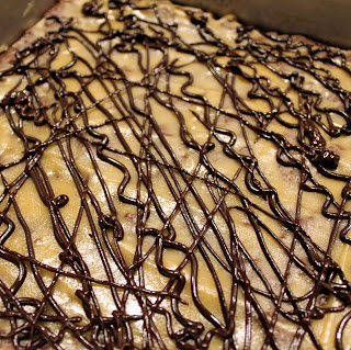 To drizzle the chocolate over the caramel, add it to a ziplock bag. Cut off one of the corners of the bottom of the bag (make it very tiny so only a very thin stream can come out.