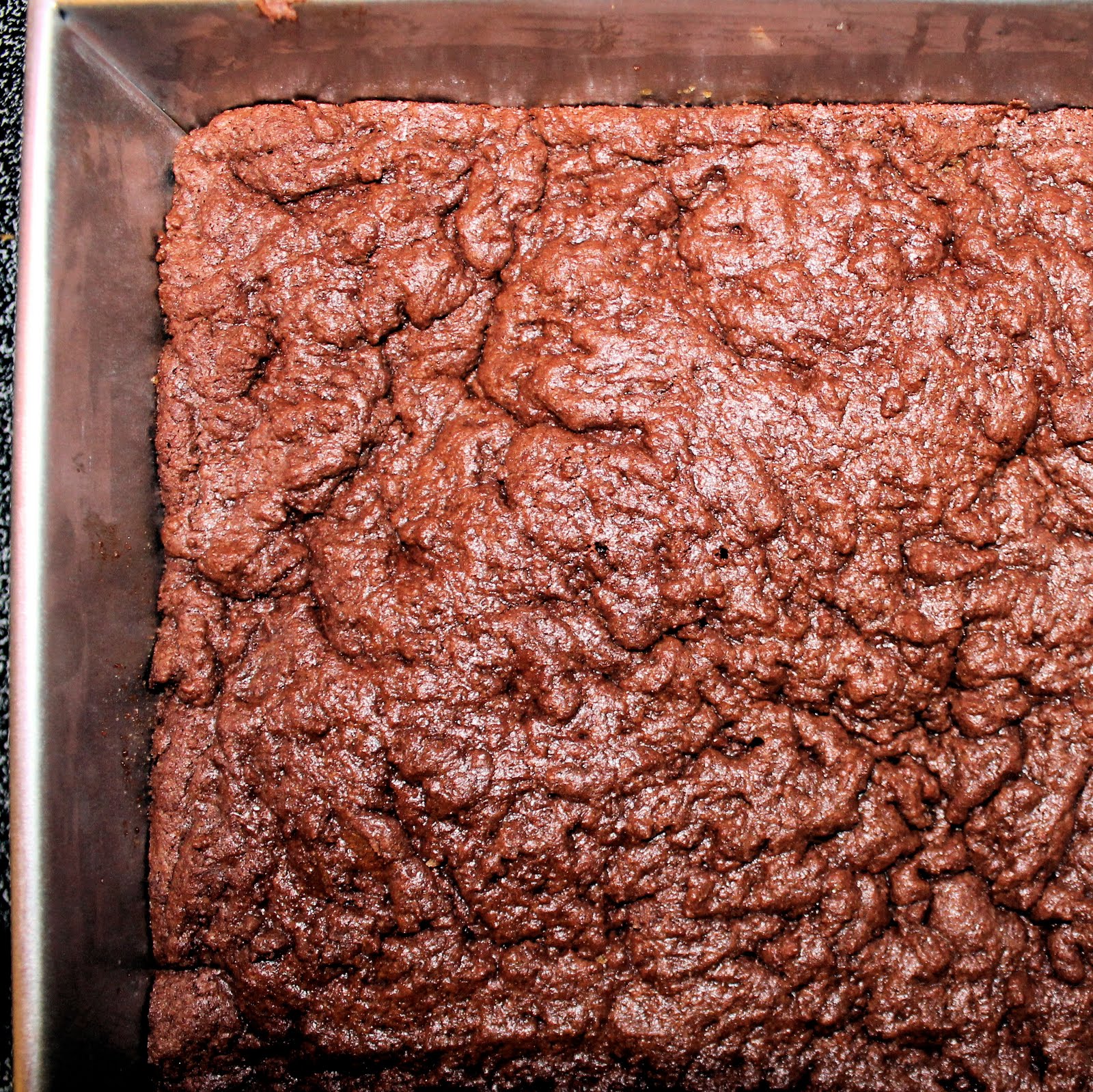 Add batter to a 9-inch square metal baking pan that has been lightly coated with cooking spray.