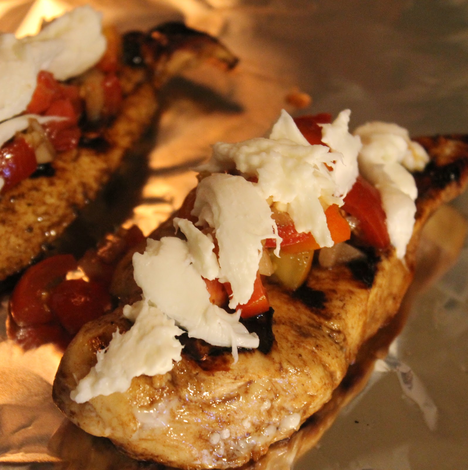 A quick, healthy, and delicious meal made with chicken marinated in balsamic vinegar then topped with tomatoes, basil and mozzarella