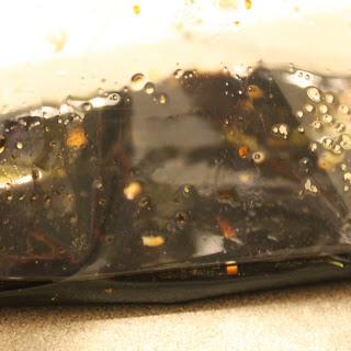 - Add ¼ cup balsamic vinegar, ½ tablespoon olive oil, 1 clove minced garlic, and salt and pepper to a ziplock bag.