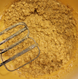 Add the oat mixture to the banana mixture and beat with a mixture at medium speed until well blended.