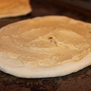 Never thought of using hummus on Pizza. Very Innovative.
