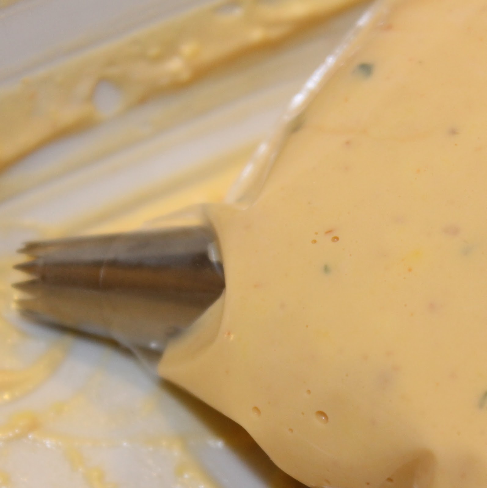 - Mix to combine, try to work out any chunks that may remain, you want it as smooth as possible. Add the mixture to a ziplock bag. If you have a pastry tip, feel free to use it. If not, just cut off one of the corners and squeeze the mixture into each egg white.