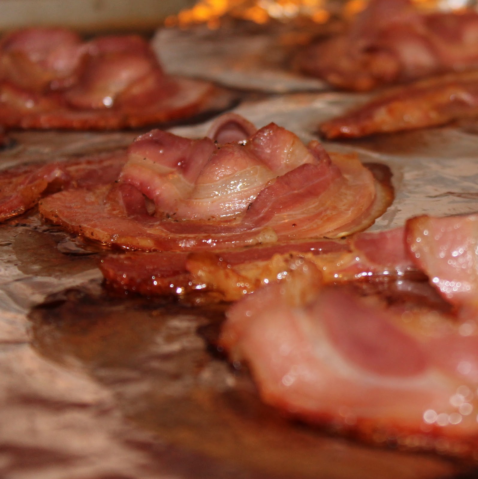 Preheat your oven to 450 degrees. Arrange the pancetta slices on a cookie sheet lined with tin foil.