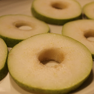 Slice the pear into equal sized slices. I got 6 slices, plus the top and bottom of the pear.