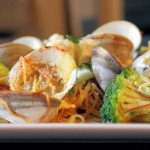 Capellini with Clams and Saffron Shrimp Scampi Spinach Spaghetti with Salmon Cream Sauce Shrimp Tomato Basil Linguine with Warm Goat Cheese RoundsShrimp Tomato Basil Linguine with Warm Goat Cheese Rounds