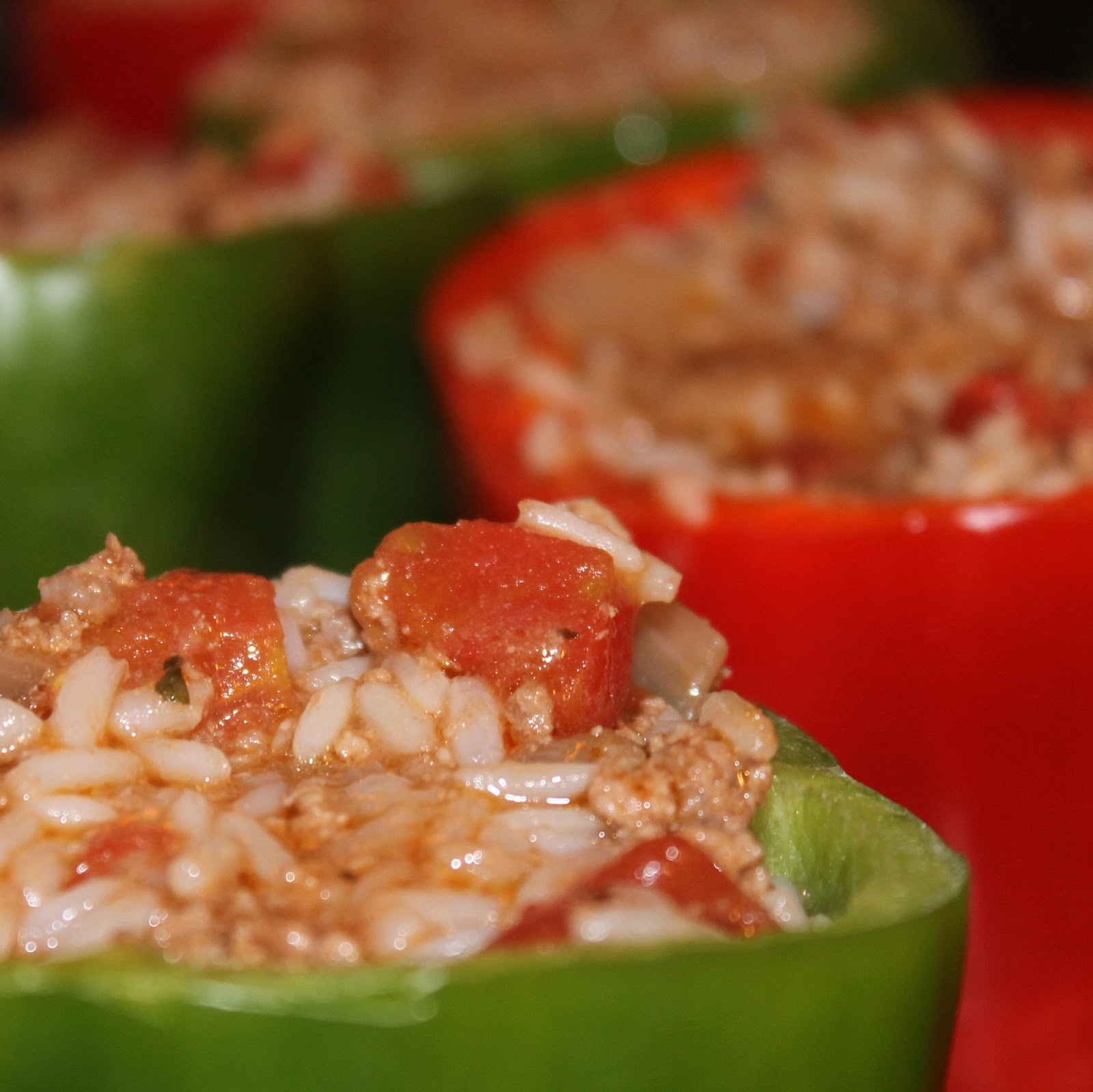I LOVE stuffed peppers. I like to cook the peppers slightly before I put the stuffing in. I like the texture of the peppers better that way. Yours look super colorful and yummy! Nice Job!