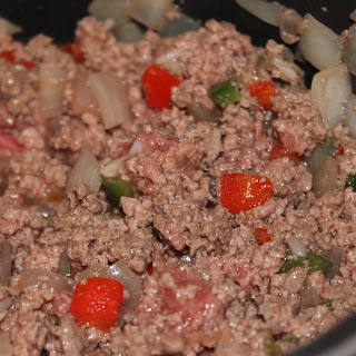 Add the ground beef, stirring to break up the meat.