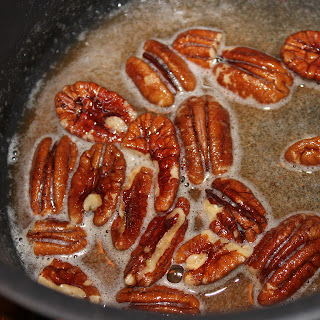 To make, add the butter to a saute pan over medium low heat. When melted, add the pecans and mix to combine. Add the cinnamon, nutmeg, and cloves and mix to combine.