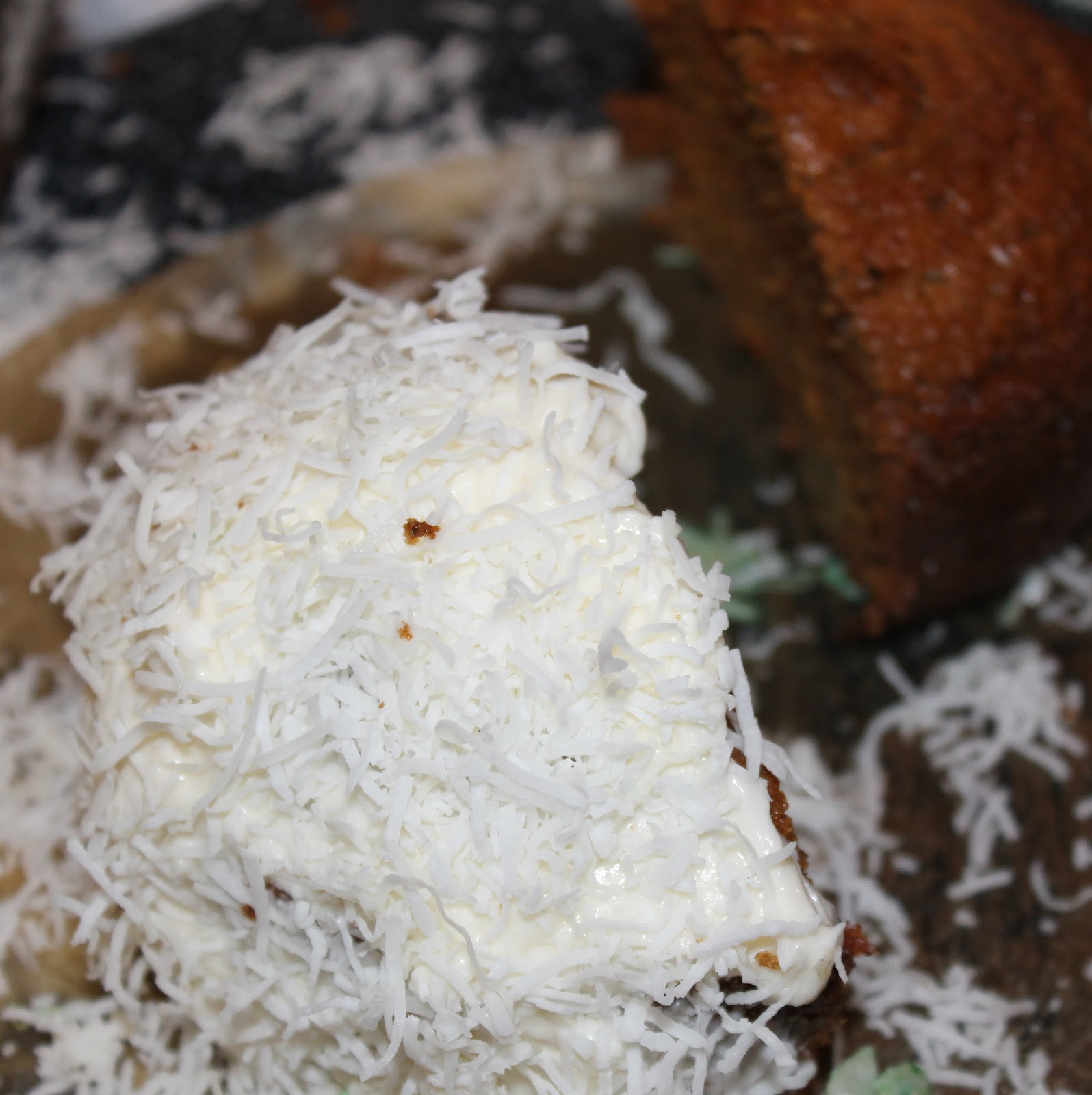 Carrot cake formed into the shape of a bunny, topped with shredded coconut. The cutest addition to your Easter dessert table!