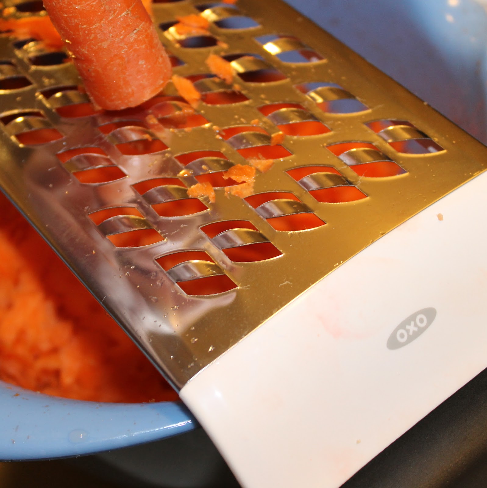 - Begin by grating your carrots. It took me about 4-5 carrots to reach 4 cups.