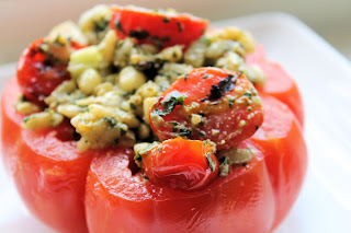 Oh yum!! What a fantastic idea of stuffing tomatoes w more tomatoes and corn and orzo. Healthy and delicious recipe. Thanks for sharing. 🙂