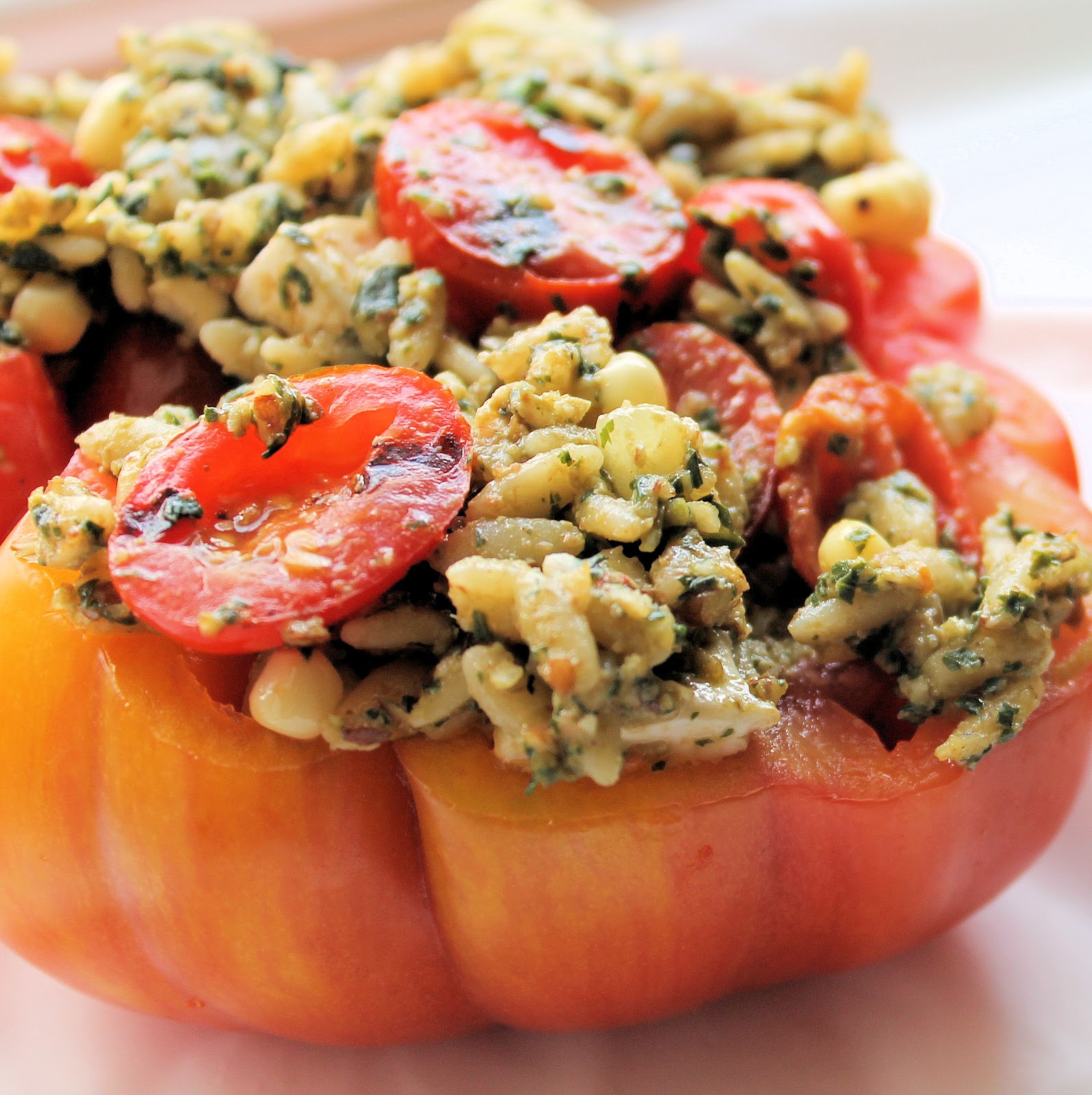 Oh yum!! What a fantastic idea of stuffing tomatoes w more tomatoes and corn and orzo. Healthy and delicious recipe. Thanks for sharing. 🙂