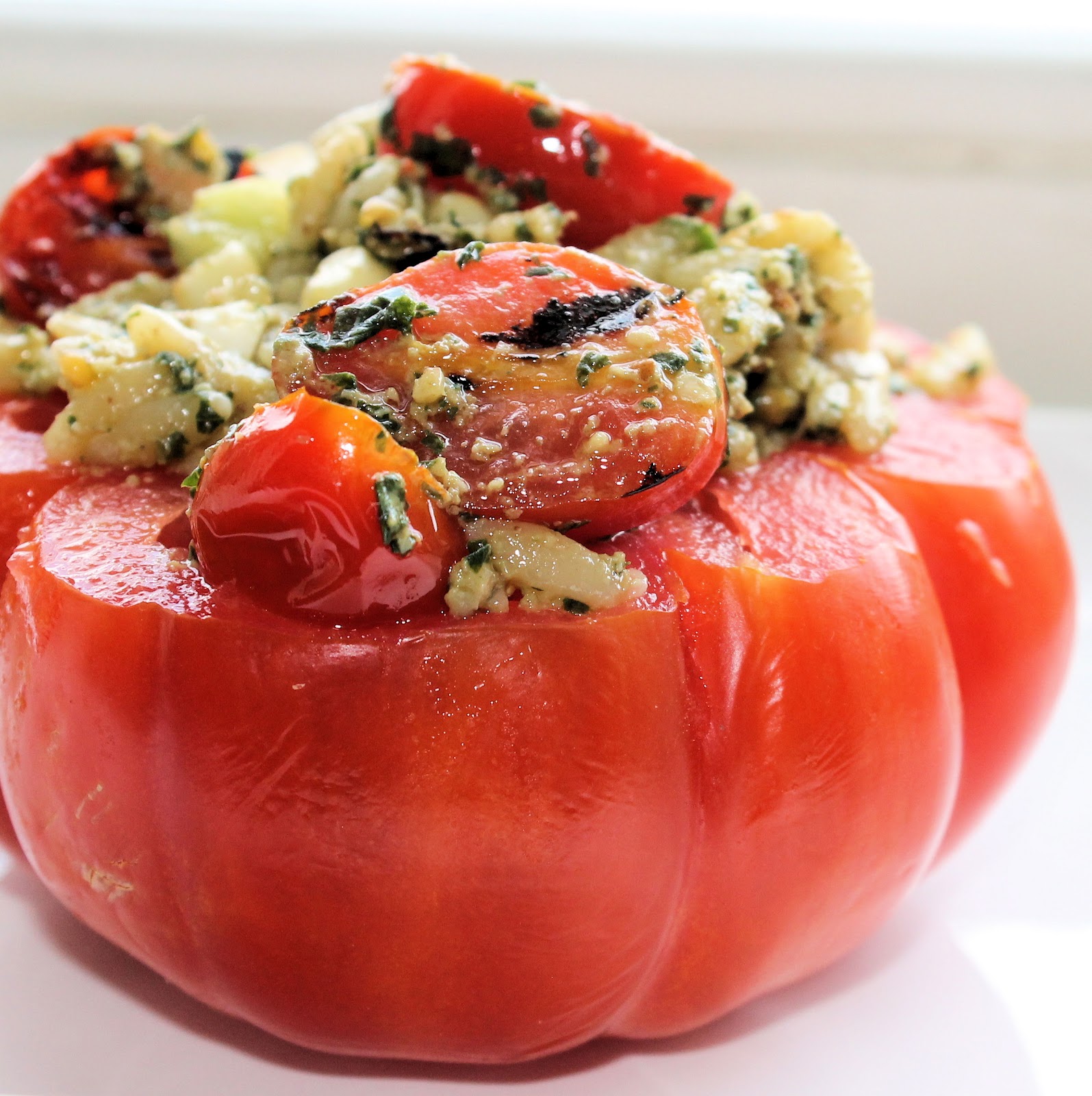 Stuffing tomatoes with more tomatoes and other goodness. You sort of can’t beat it! Yum!
