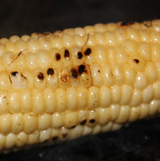 Remove from grill and allow to cool. Place the corn on the cob on the grill, spraying with cooking spray. Cook for 2 minutes on each side, or until grill marks appear. Set aside and allow to cool. Remove the kernels using a knife. (If using frozen kernels, allow to thaw. Add to a pot over medium high heat and mix until slightly charred).