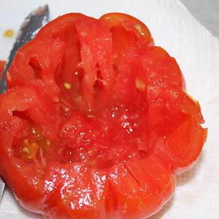 Cover and refrigerate for an hour or overnight. Before serving, rinse the heirloom tomatoes. Cut off the top of each and use a spoon to remove the center and all seeds.