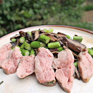 To serve, add even amount of the mushroom mixture to 4 plates. Top with sliced duck breast and drizzle with about 1.5 teaspoons vinaigrette.