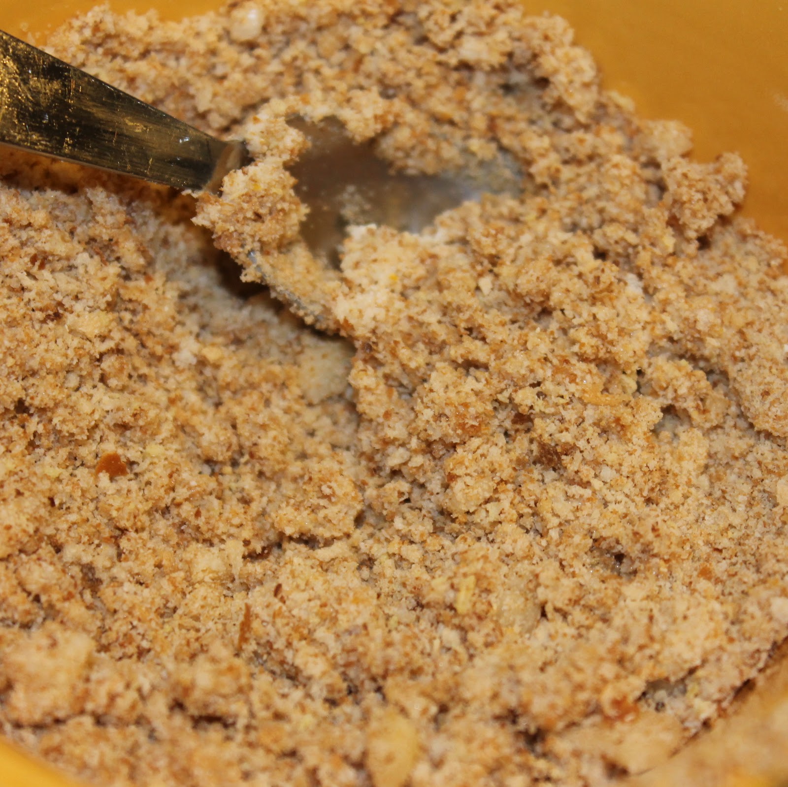 - Melt 2 tablespoons butter and combine with the bread crumbs and minced garlic.