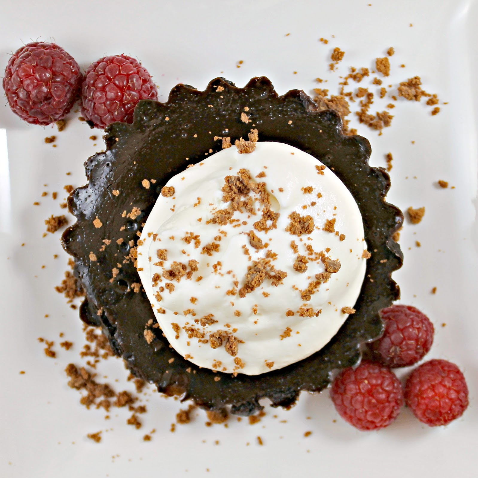 The tart is super dense and chocolately so the raspberries and whipped cream are a must. You could also top this with vanilla ice cream.