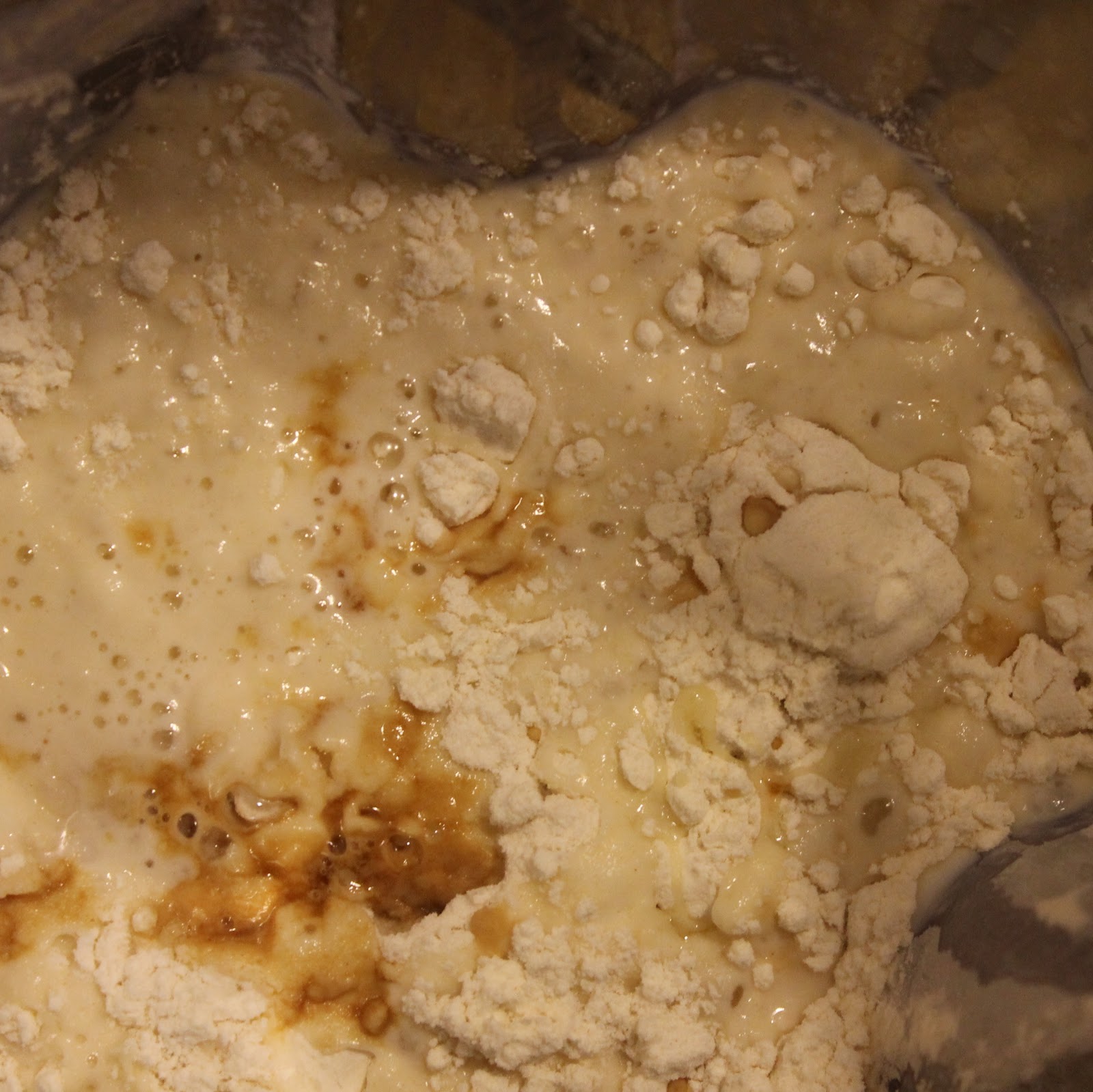 Blend on medium speed for 10 to 15 seconds, or until mixture is smooth and has the consistency of heavy cream. (If it seems to thin, add a bit more flour. Too thick, a little more milk is needed)