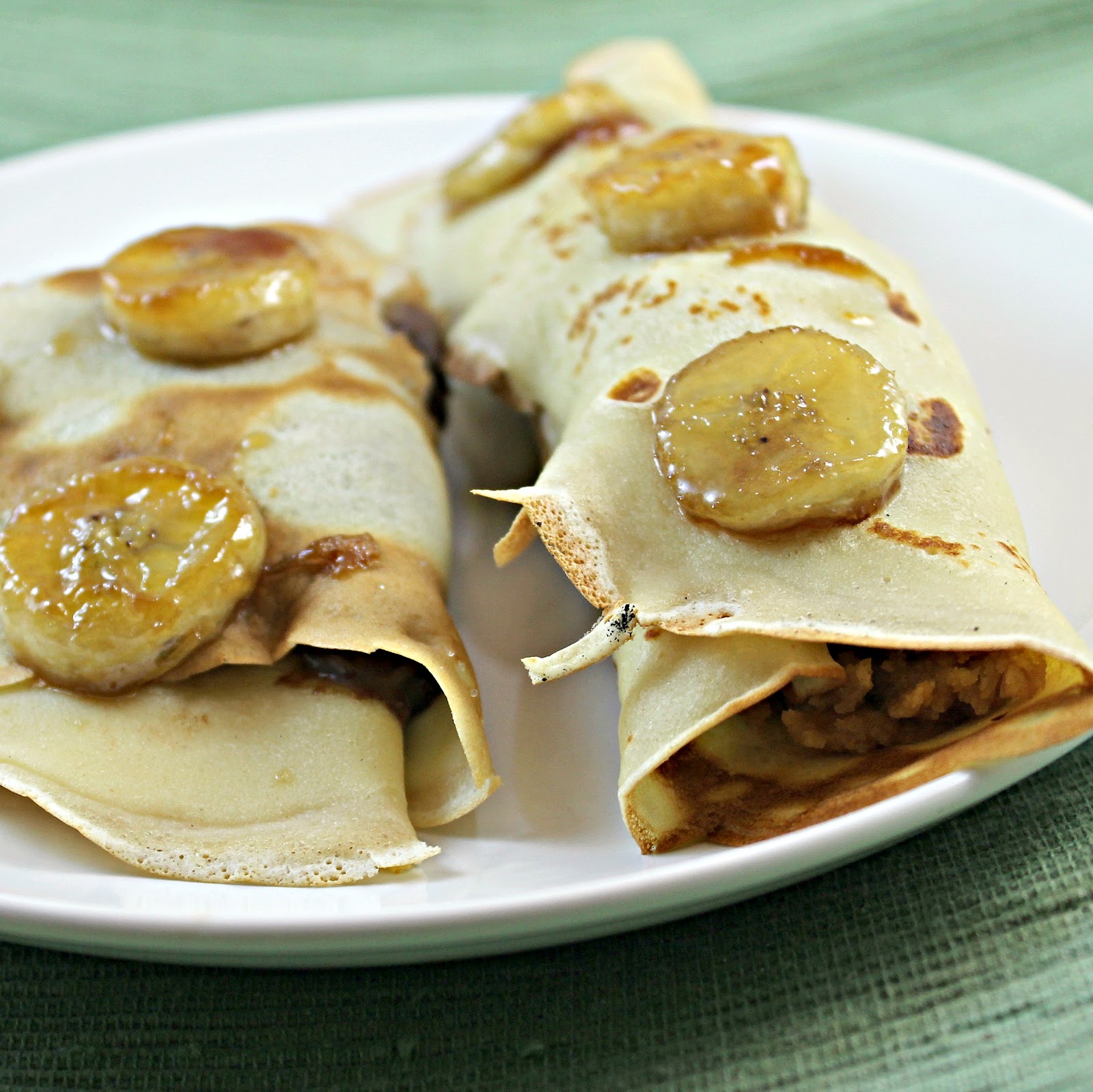 I decided to make the Cookie Dough-Filled Crepes. I must have had some inspiration from Elvis because I decided to use a peanut butter cookie dough instead of a traditional chocolate chip. I also added some nutella to really make it delicious. I topped the crepes with sauteed bananas to complete my decadent breakfast.