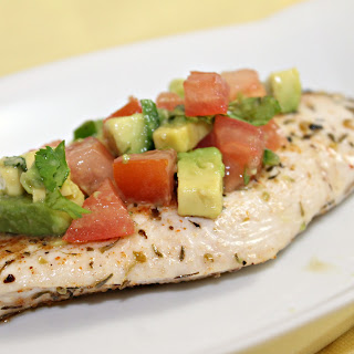 I have inexplicably been picking up an avocado each and every time I buy groceries. I didn’t have a recipe for the avocados, I just kept buying them. I guess my subconscious really wanted one. So I finally sat down and found a recipe highlighting them: Seared Chicken with Avocado. I added some tomato to give it a bit more freshness but the rest of the recipe is pretty intact.