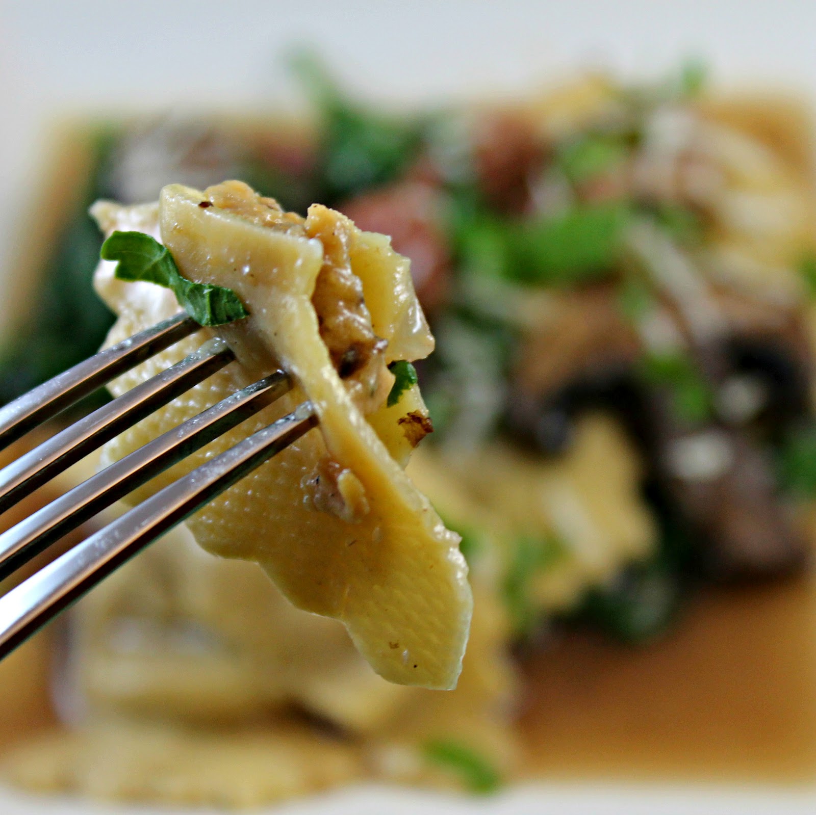 Chicken Marsala Ravioli with Spinach and Mushrooms