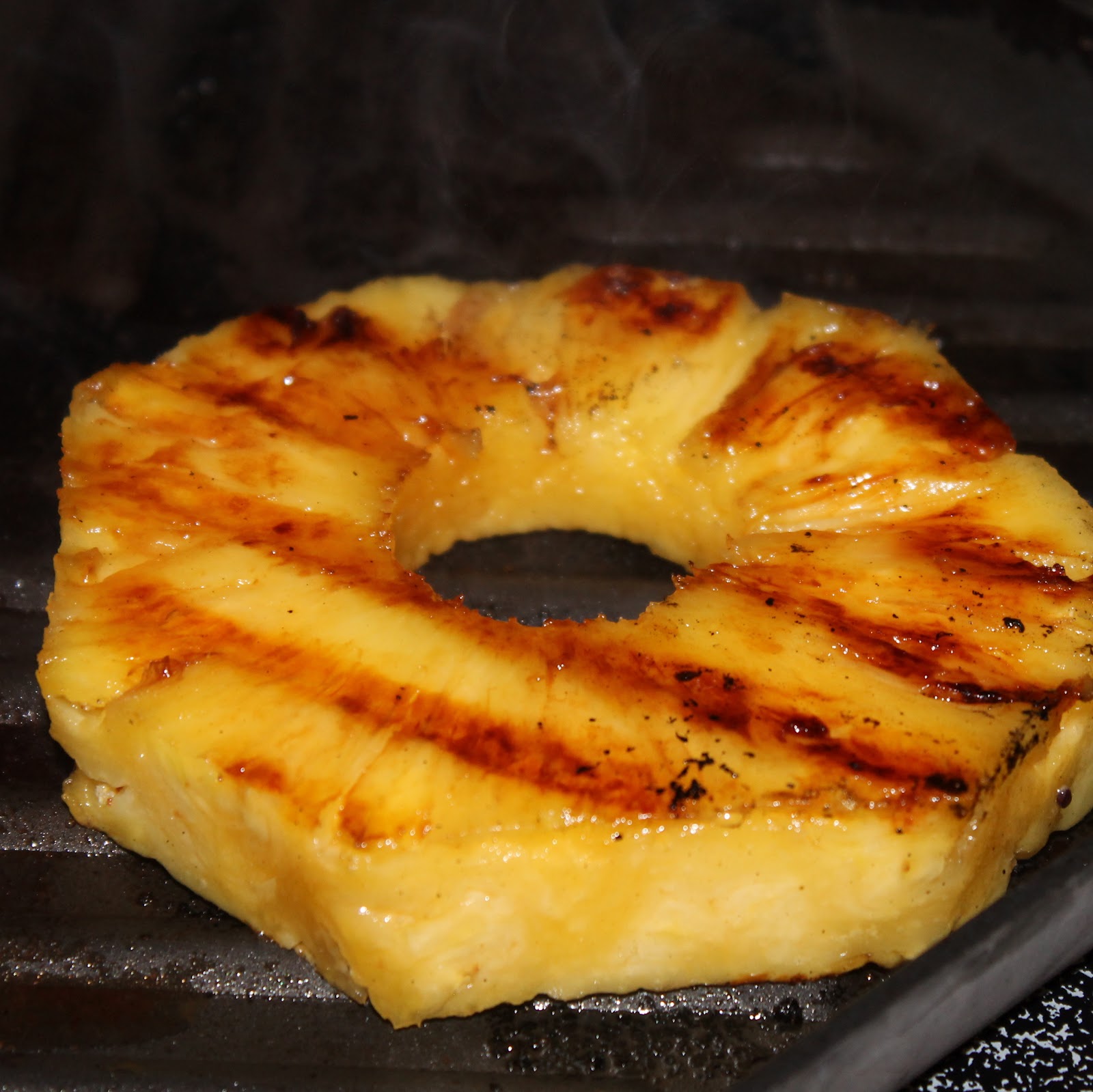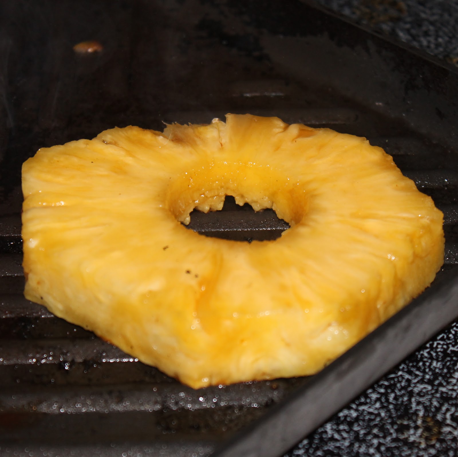 Heat a grill pan over medium-high heat. Melt the butter in the pan and add the pineapple slices. Grill for 1-2 minutes on each side or until grill marks appear.