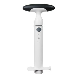 - To cut using the OXO pineapple slicer: Cut off the top of the pineapple. Twist the pineapple slicer into the top of the pineapple. (I found this easiest to do with the pineapple slightly lower than me so I could put some force on to the slicer). The racheting aspect of the tool allows you to twist the tool without readjusting your grip. To remove the pineapple, press the buttons on either sides of the handle, turn the slicer upside down, and slide the slices off.