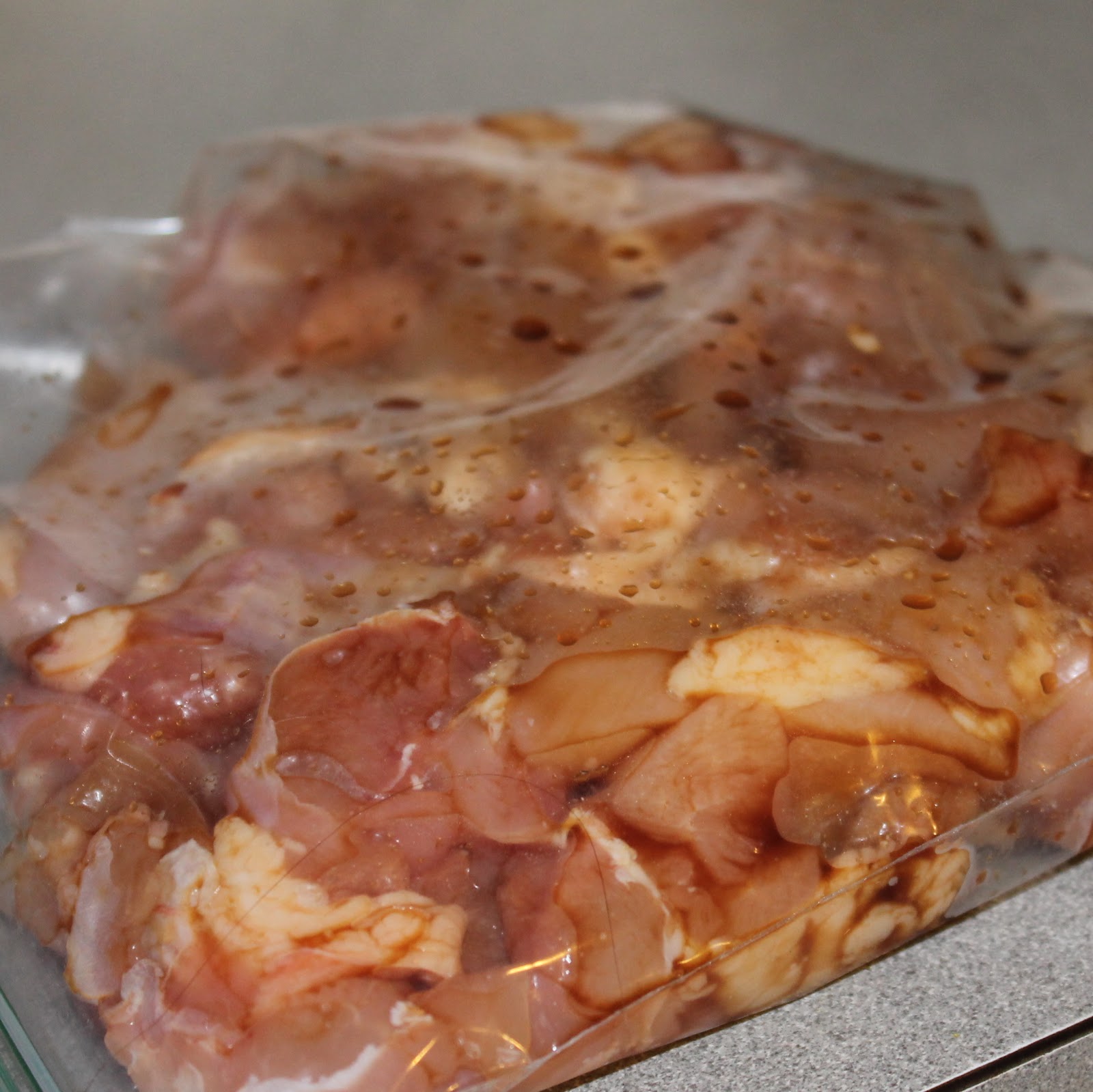 - Add the chicken to a large zip-top plastic bag. Add 1 tablespoon soy sauce to the bag and seal. Marinate at room temperature for 30 minutes.