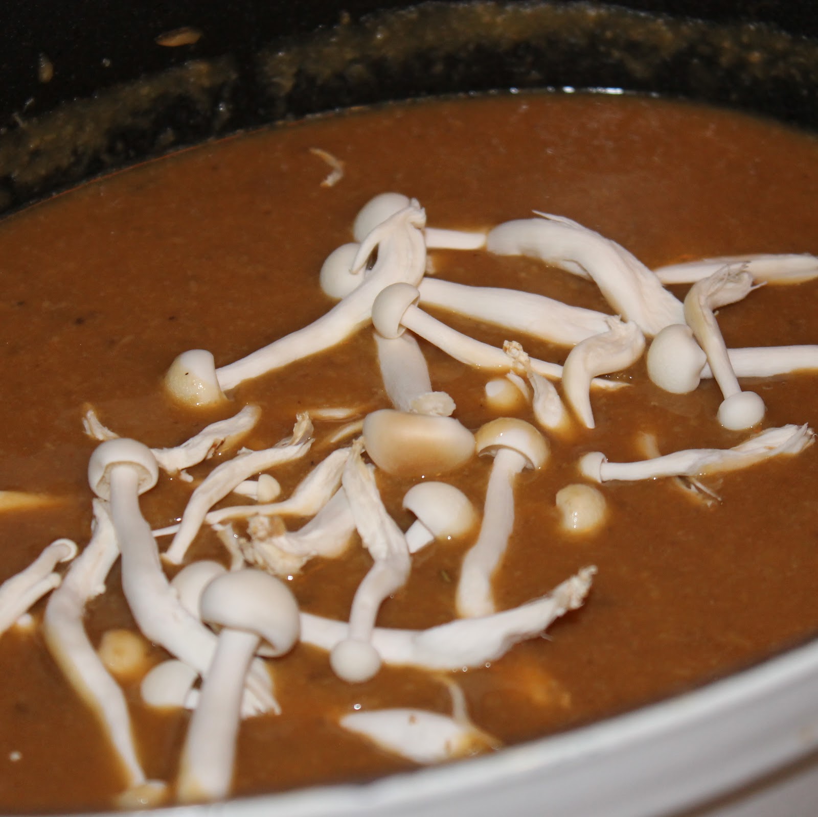 Return the pureed mixture to the pot. If the mixture is too thick, add a bit more stock. Heat over medium heat and add the beech mushrooms (optional). Cook for 1-2 minutes or until heated through.