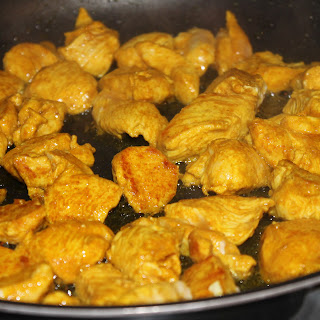 - Cut the chicken into 1 inch pieces. Add the chicken to a bowl with 1 tablespoon olive oil and 2 teaspoons curry powder. Mix to coat.