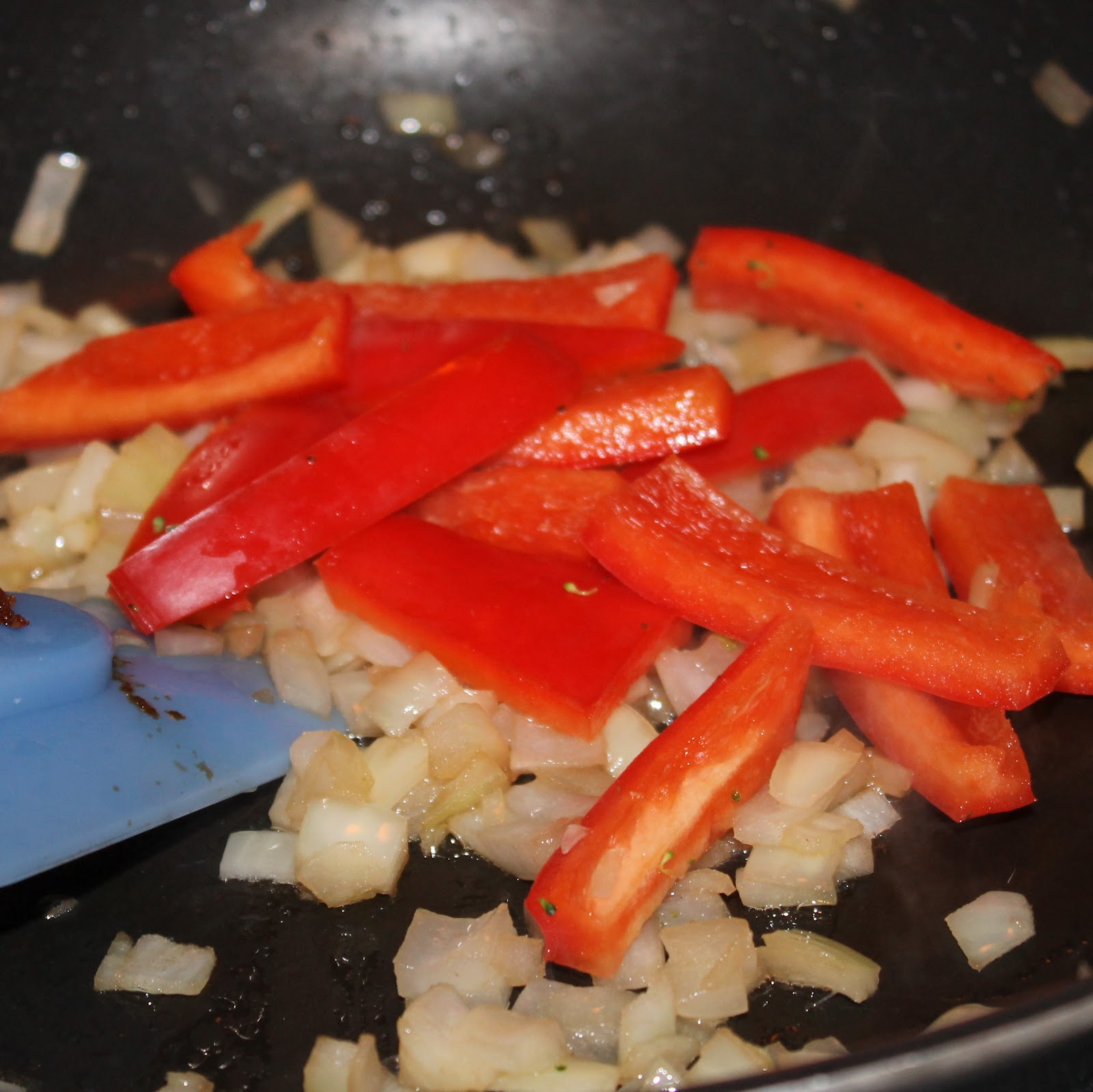 Cook, stirring, for 2 minutes. Add the red pepper and cook, stirring, for 1 minute.