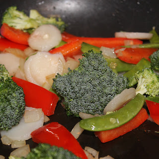 Add the broccoli, snow peas, and water chestnuts and cook until heated, about 2 minutes.