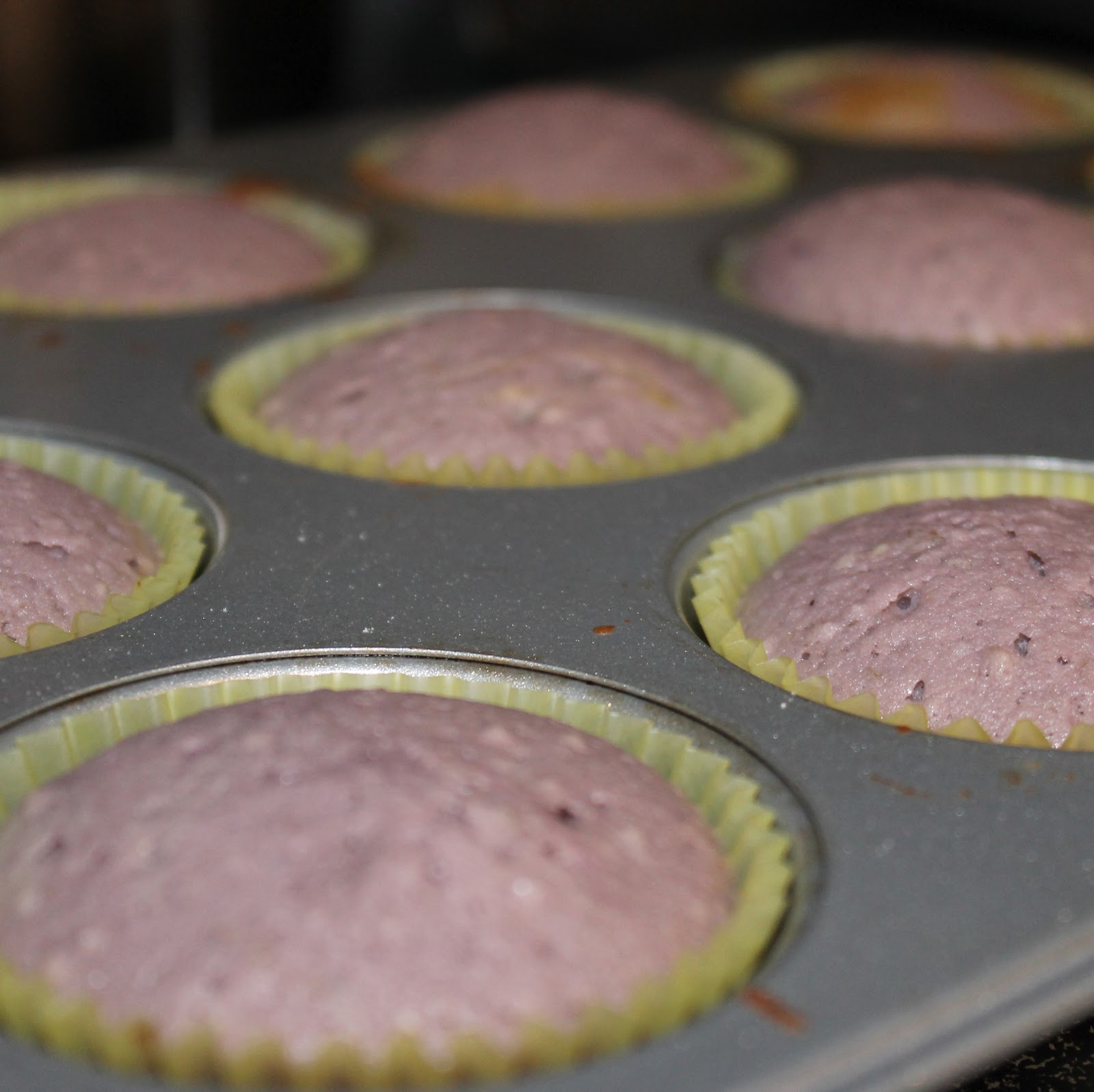 I wanted to give the cupcakes a lavender color so I added equal parts blue and purple food die (about 20-25 drops of each) to the batter. In retrospect, I should’ve added the coloring before adding the sour cream mixture and the flour mixture. Oh well.