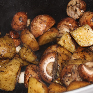 Add potatoes to the pot and cook 3 minutes or until browned, stirring occasionally. Add mushrooms; sprinkle with 1/4 teaspoon salt.