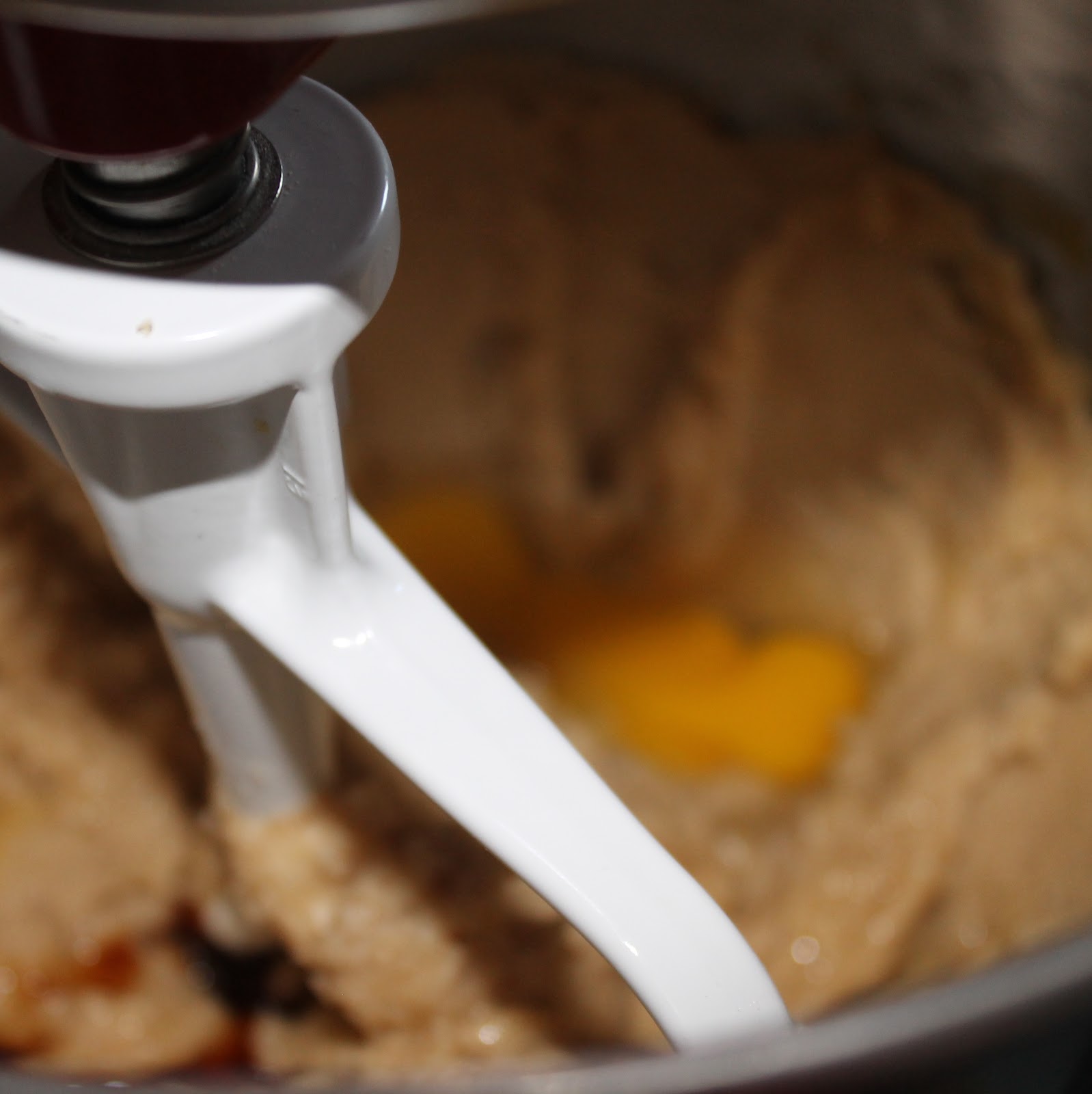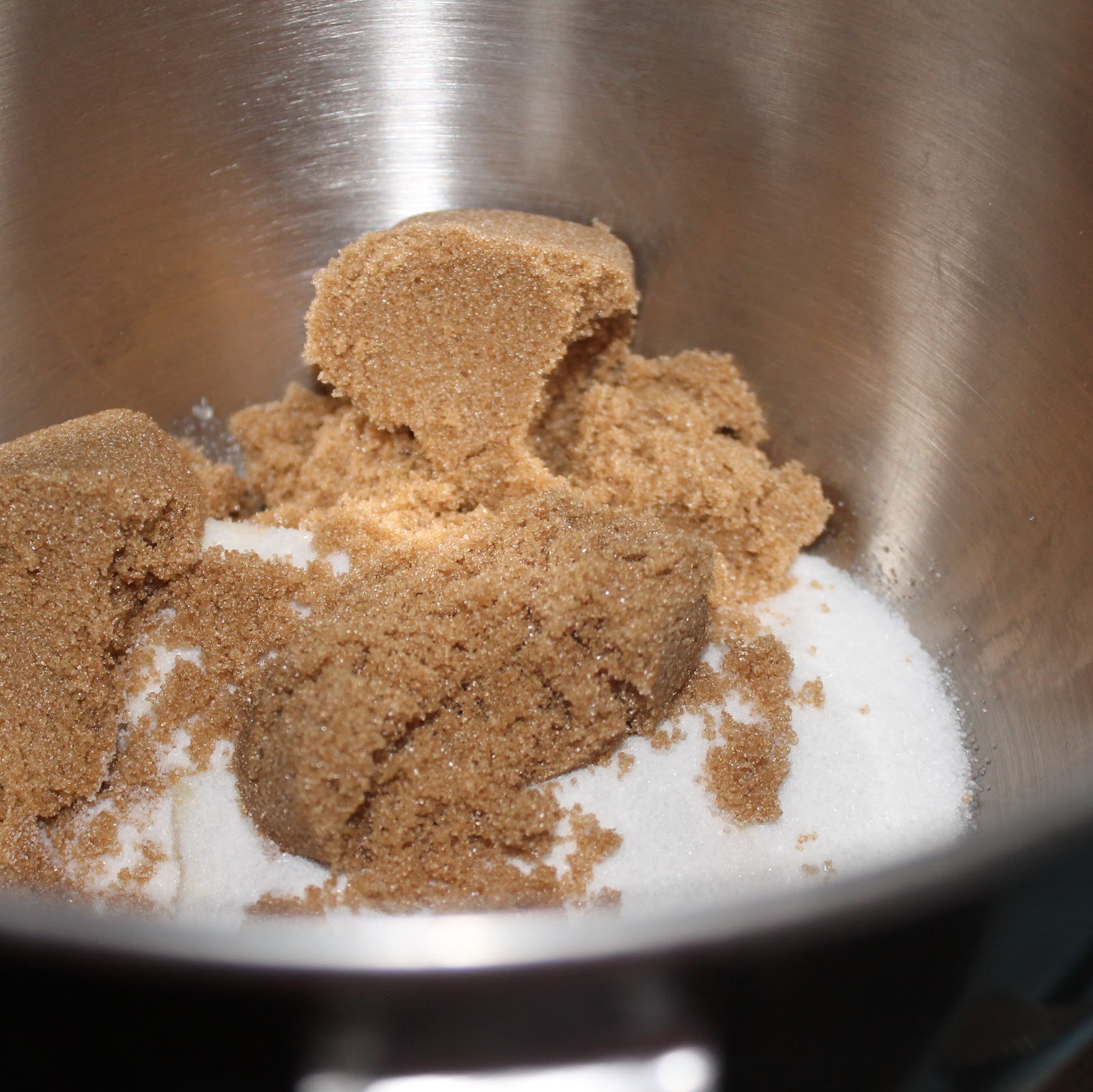 To make the dark chocolate dough, add the butter, sugar, and brown sugar to a bowl.