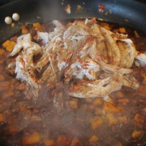 4. Add the wine, turkey breast, salt, black pepper, cumin and smoked paprika, stirring to combine.
