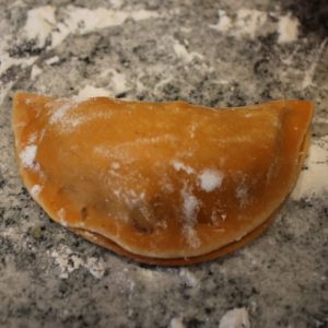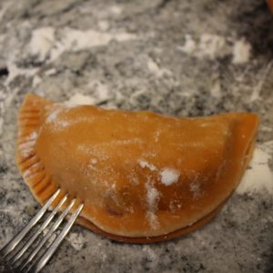 8. Fold the disc in half, then seal using the tines of a fork to close.