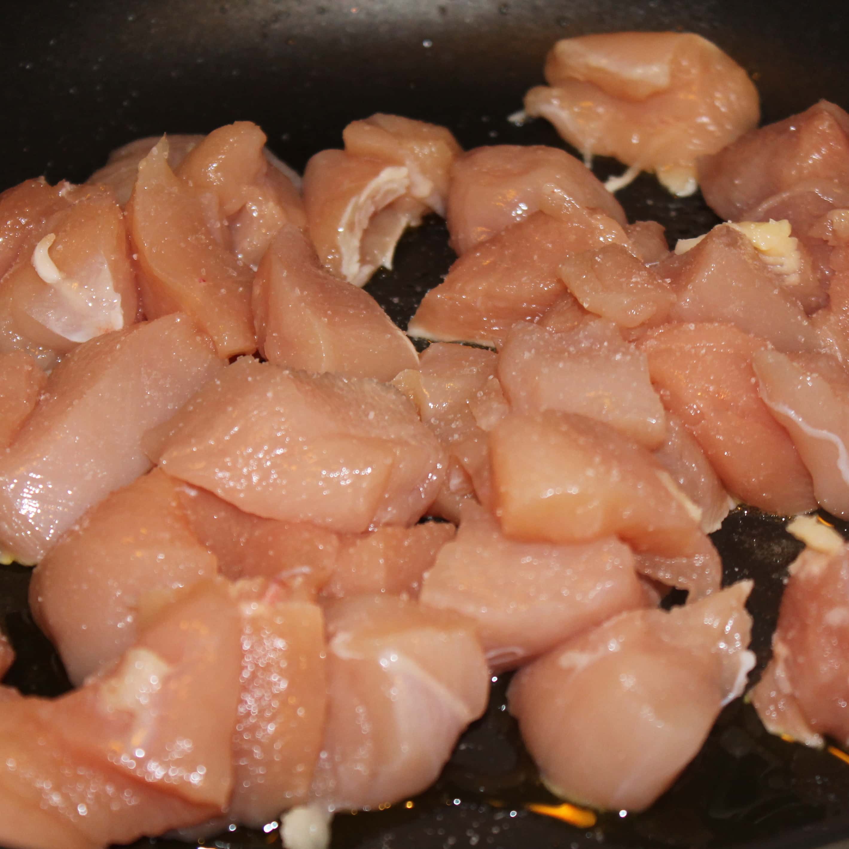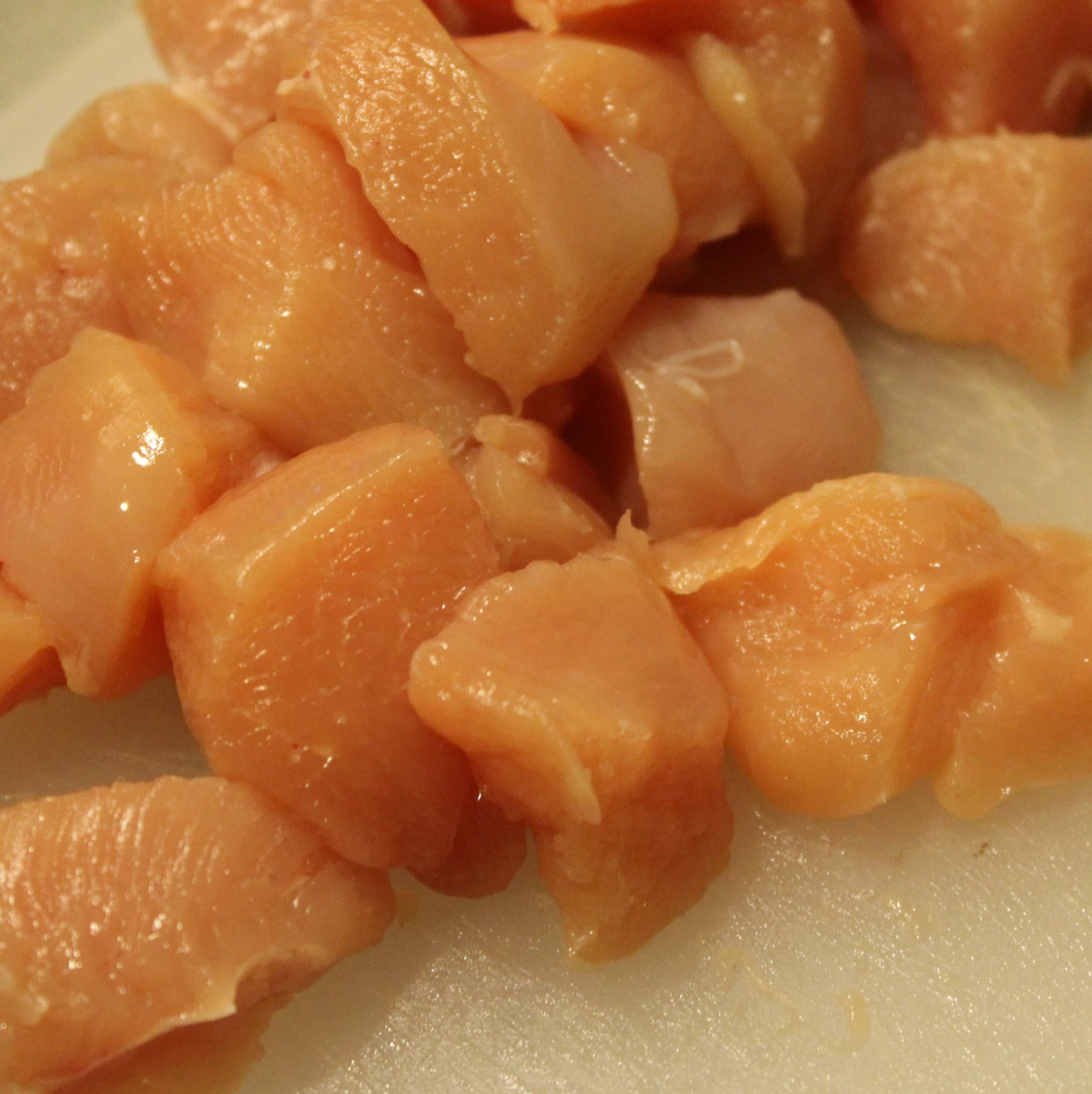 Cut chicken into 1-inch pieces.