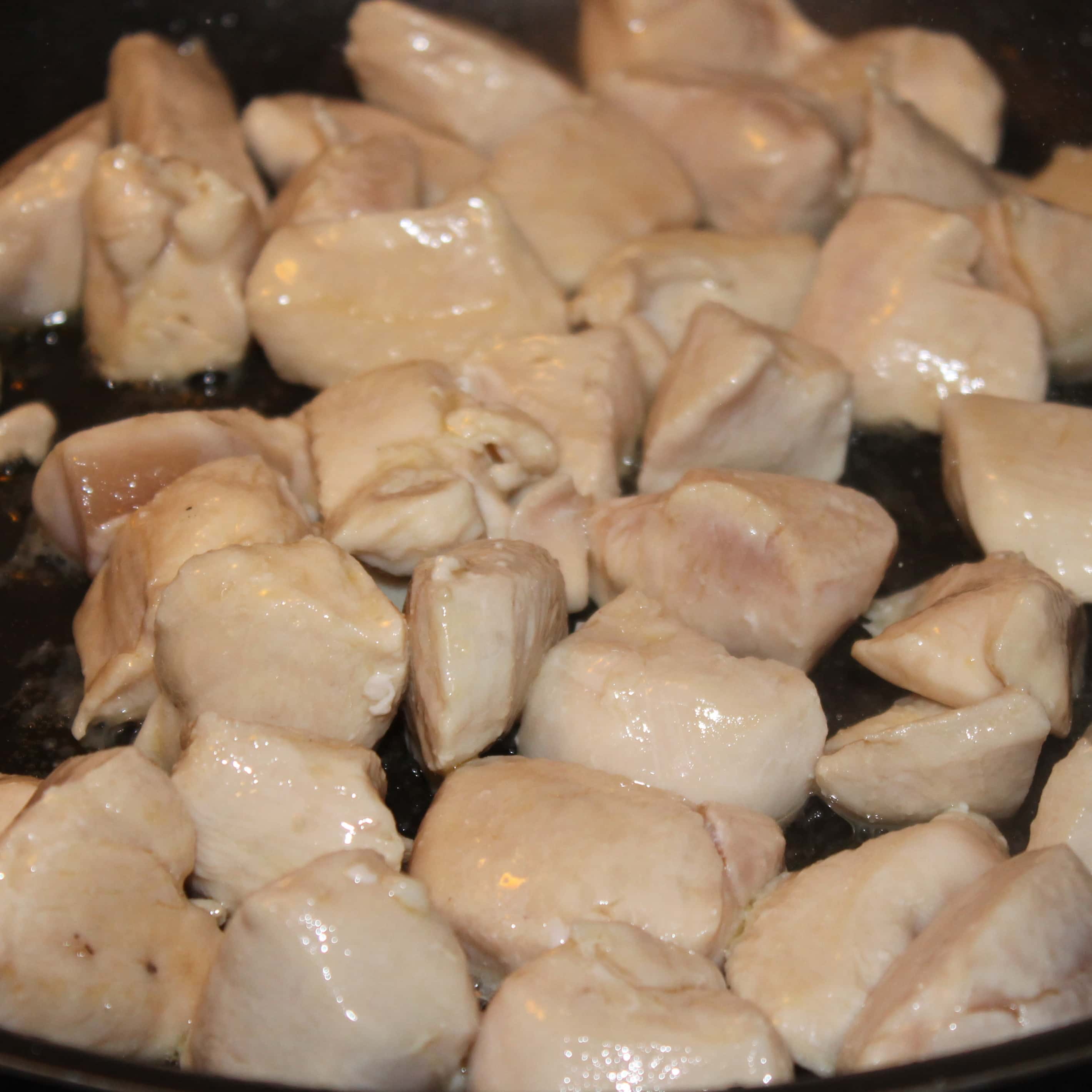 - Cook chicken 5 minutes or until lightly browned, stirring occasionally.